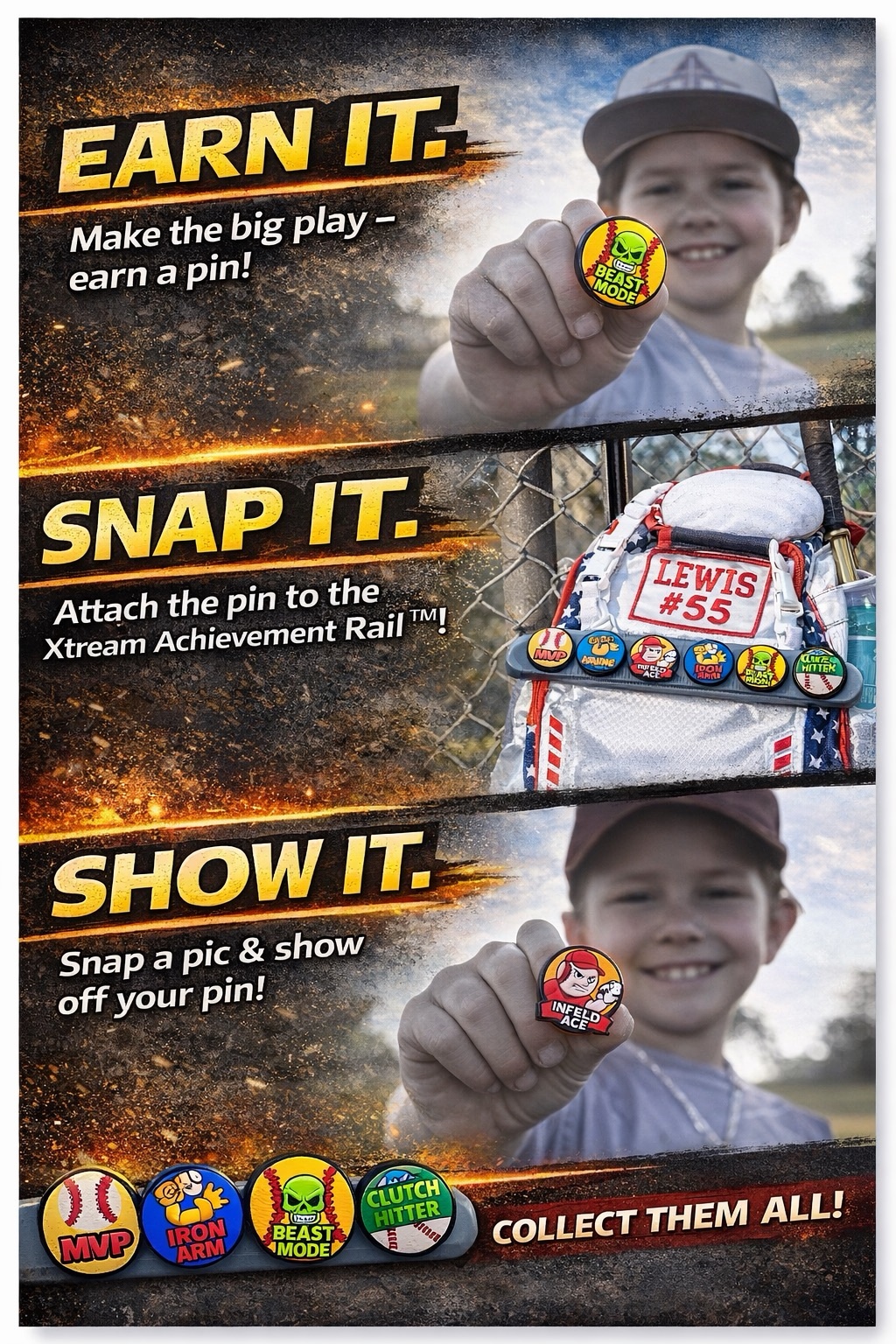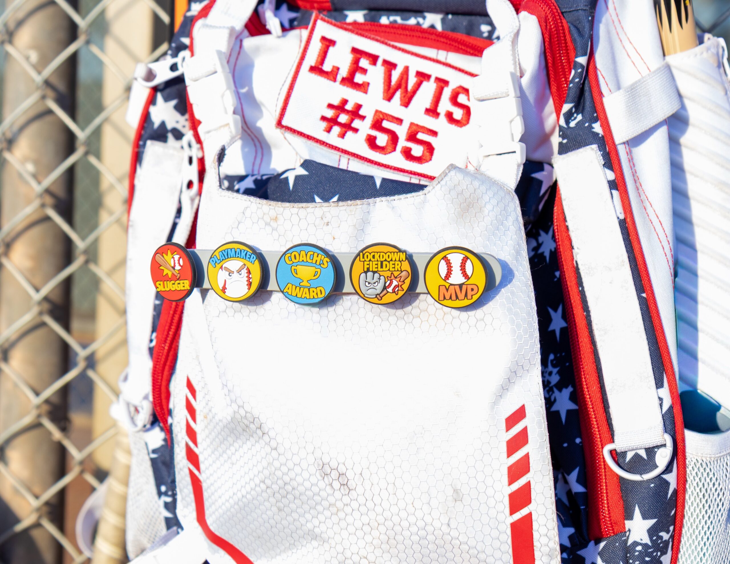 Each rail pins easily onto a backpack or jersey, giving players a place to display Snap-on achievement awards they earn throughout the season.